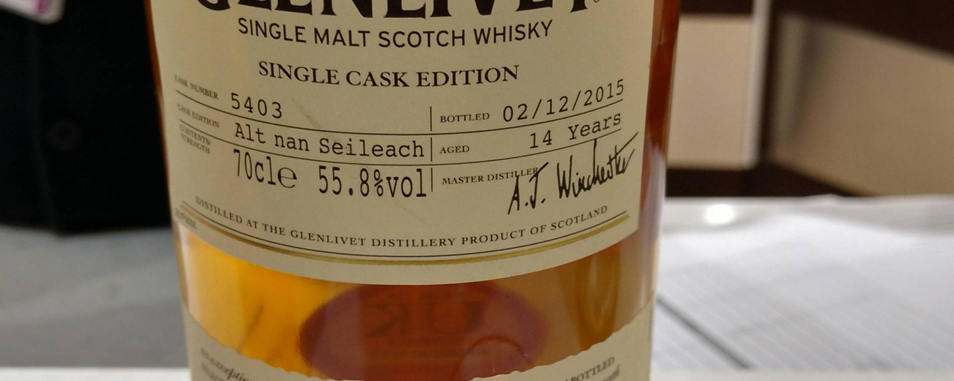 after my disappointment, the bartender asked me what I Liked and didn’t like about it and then reached under the counter for a bottle he said he only pulls out occasionally. This Single cask glenlivet is aged in sherry hogshead for 14 years and bottled at cask strength. needless to say, I was excited.