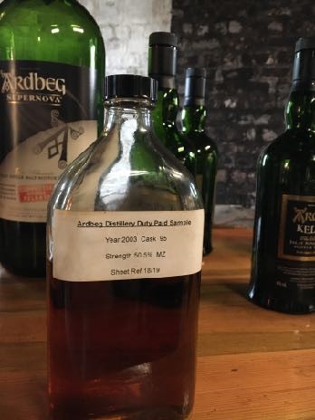 Our tour at Ardbeg was the Ardbig tour, but this iteration of the Ardbig was going to be a little different. Over the last few years, we’ve cultivated a pretty good relationship with the Ardbeg folks and Jackie, the visitor centre manager/committee bottle release gatekeeper, decided to lead our tour herself. Often the Ardbig tour has a bunch of old classics with age statement and then you finish up in warehouse 3 with the chance to try a few of the more rare committee releases, but thanks to my brother, all those who signed up for this Ardbig had a very special lineup. Rather than a couple age stated expressions and several NAS vatted malts, we tried the 23, the new 19 and then 4 single cask samples – a 10 year fresh Bourbon, a 14 year first-fill Oloroso, a 16 year first-fill Manzanilla and mostly due to my own inadvertent look behind the table where I discovered another duty-paid sample bottle labelled NFO, a 14 year New French Oak. I really only wanted to know what NFO stood for, my intent was to actually ask Jackie if we could try the Supernova from the giant bottle sitting at the table. In the end, Jackie decided that the NFO would be a bonus dram.