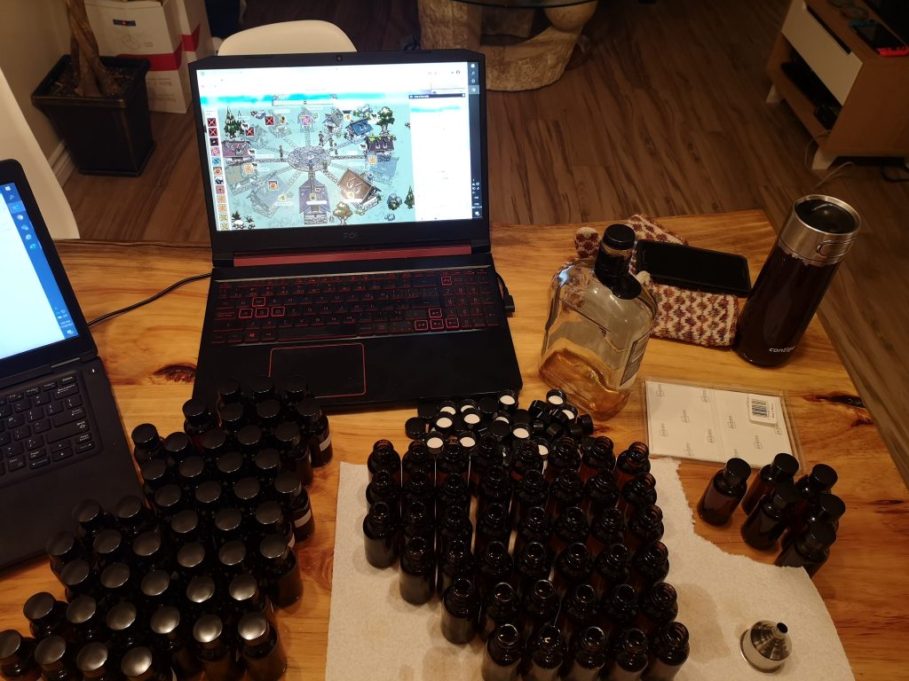 Below: basically my COVID life – online games and pouring samples while working 😛
