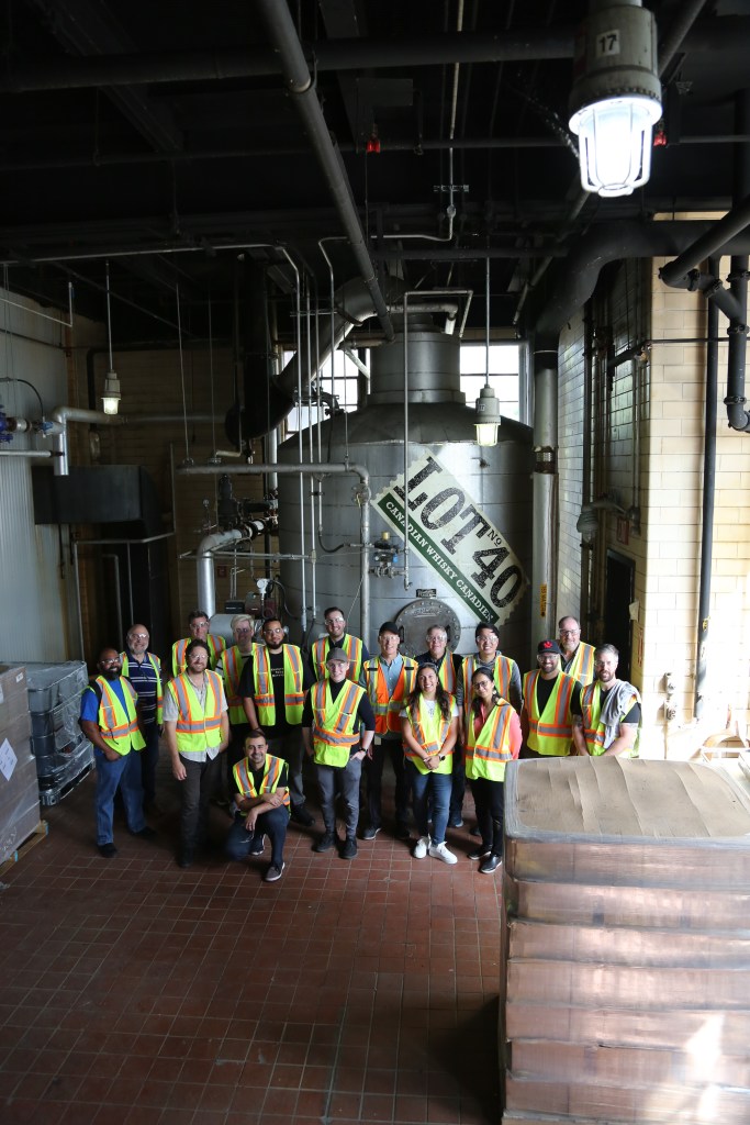 In September, TWS members visited the Hiram Walker Distillery in Windsor, Ontario. This wasn’t the first time for some of us, as the TWS founders visited in 2017. We toured the grain receiving, fermenters, the stills, the Pike Creek warehouses and then had a blending session with Dr. Don Livermore where we applied everything we learned (and tasted) to make our very own blends. Fueled by caffeine, we groggily boarded a party bus that left downtown Toronto at 5:30am to visit the largest distillery in Canada. Our previous visit included a ton of detail, so this post will mostly be pictures, enjoy!