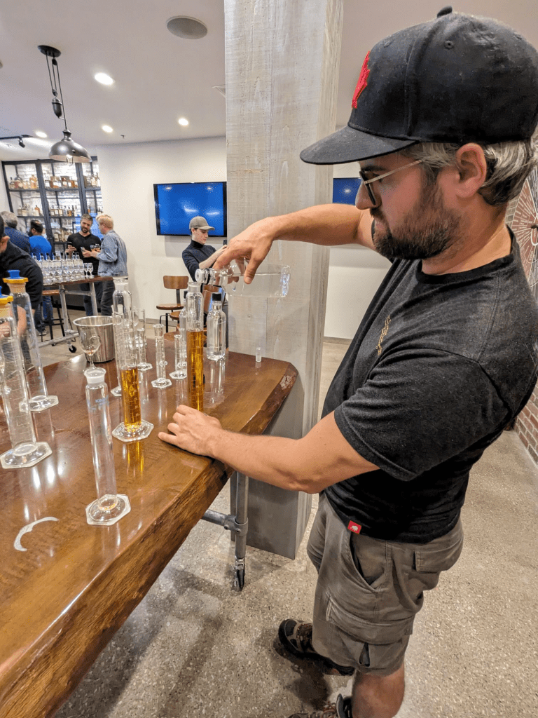 we bid farewell to this amazing smelling place, but followed it up with an equally awesome experience blending from 140 different possible inputs!hopefully some more Lot 40 CS releases coming in the future….Don teaches the history and science of blending before we tackle the ART of blendingserious science happening herewe MAY have indulged a little while creating our own blends…With that we bid Hiram Walker a fond farewell! There will be no pictures of the party bus ride home, but it was a good time featuring some of the J.P. Wiser’s Alumni series!