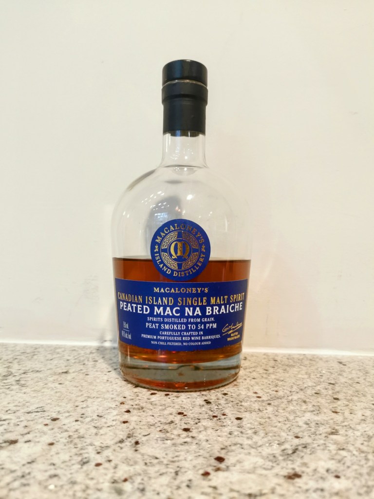 Macaloney’s Peated Mac na Braiche (son of malt) is a single malt spirit, as it’s under 3 years of age. We first tasted MNB at an event in 2017 and saw some real potential already then.