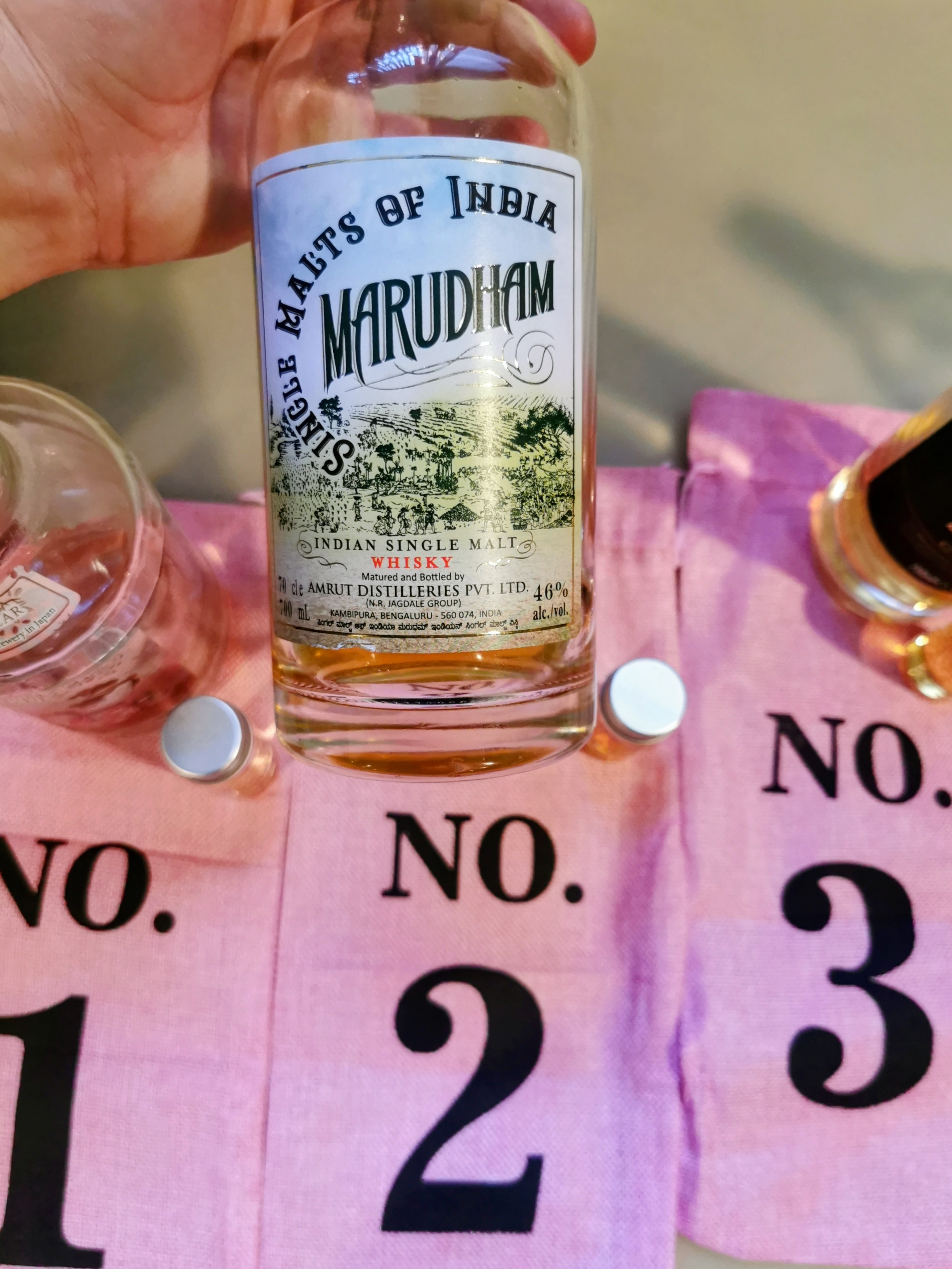 Next up was the 2025 World Whisky Awards Bronze Medal winner. A light tan colour and a slightly lower ABV at 46% Amrut Marudham Indian Single Malt was next up. India garnered a few guesses with thoughts that this had a stronger ABV than the first tasting. The ex-bourbon cask aging assisted in the tropical fruit, vanilla and prominent baking spices notes.