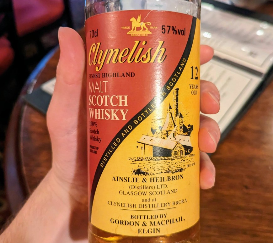 This whisky has been staring me in the face behind the bar at my pub for ages, and I’ve finally gone and tried it. There’s more to this that meets the eye. The distillery that’s known today as Clynelish was built in 1967, right next door to the original Clynelish distillery which was renamed “Brora”. Bizarrely, up until the mid-70s, it was common practice for … Continue reading [Review] Clynelish 12 Gordon & MacPhail “Ainslie & Heilbron” (bottled ~1984)